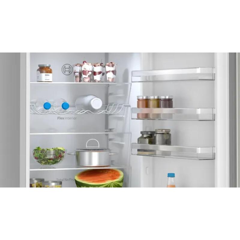 Ahora puedes situar el frigorífico donde te vaya mejor. Los frigoríficos convencionales necesitan una distancia de unos 10 cm respecto a las paredes laterales para poder abrir las puertas y los cajones. En cambio, nuestra gama de frigoríficos-congeladores Perfect Fit pueden colocarse pegados a paredes y muebles. El frigorífico-congelador que se adapta a cualquier hueco.