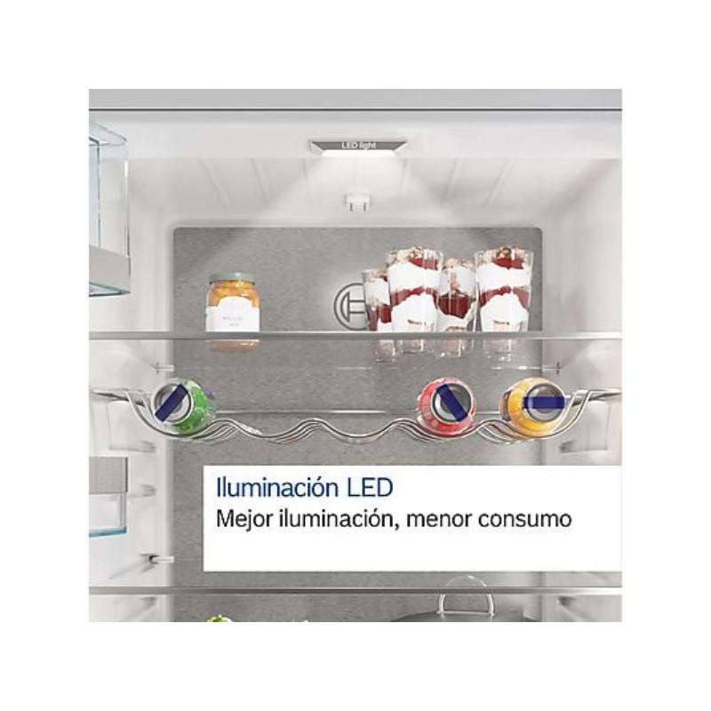 Gracias al sistema VitaFresh , frutas y verduras permanecen frescas durante más tiempo, manteniendo sus propiedades y sabor intactos. La Tecnología Inverter , por otro lado, ajusta la temperatura de forma continua, garantizando la estabilidad térmica dentro del frigorífico y mejorando la eficiencia. La iluminación LED ofrece una visibilidad perfecta sin incrementar el consumo.