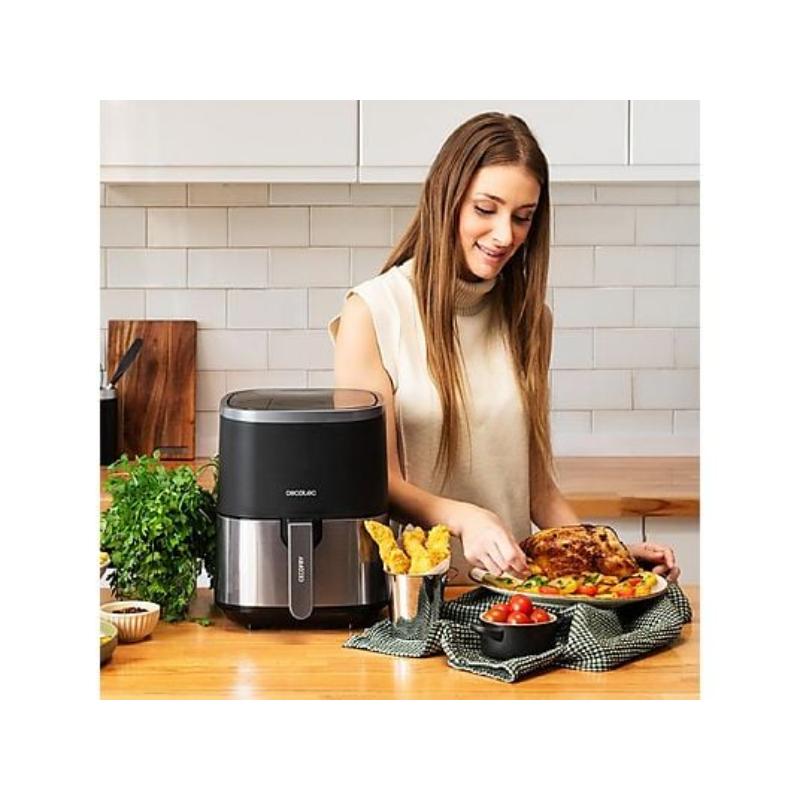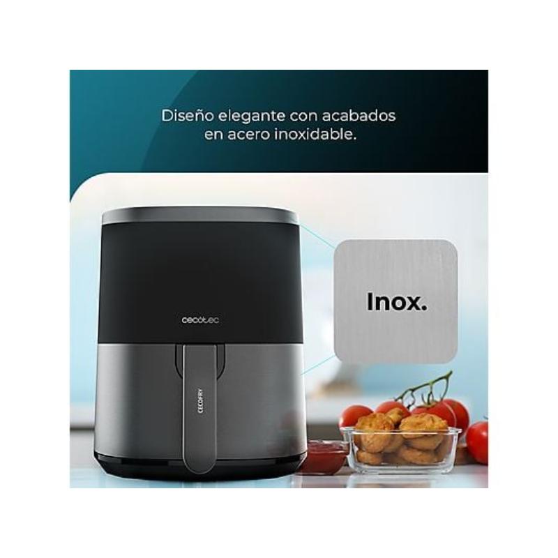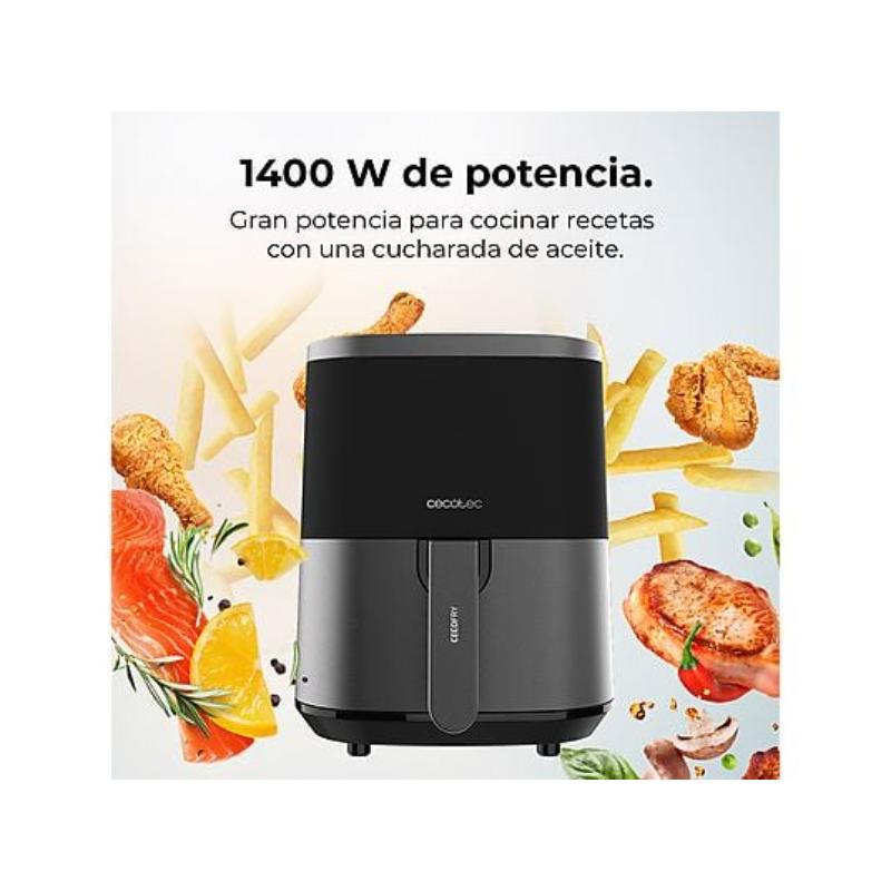 Freidora dietética con 1400 W de potencia que permite cocinar de manera rápida todo tipo de platos con una sola cucharada de aceite.