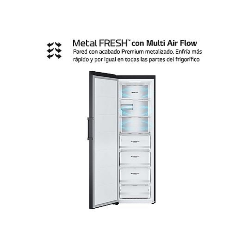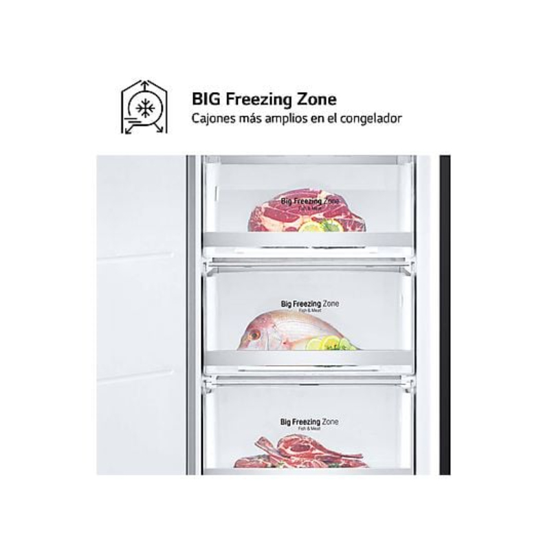 El LG GFM61MCCSF combina rendimiento, comodidad y diseño elegante en negro. Su sistema No Frost mantiene el interior libre de escarcha, evitando la necesidad de descongelaciones manuales, mientras que LinearCooling™ asegura que la temperatura se mantenga constante en todo momento, preservando el sabor y los nutrientes de los alimentos.