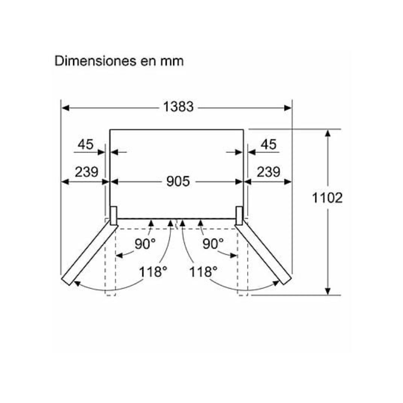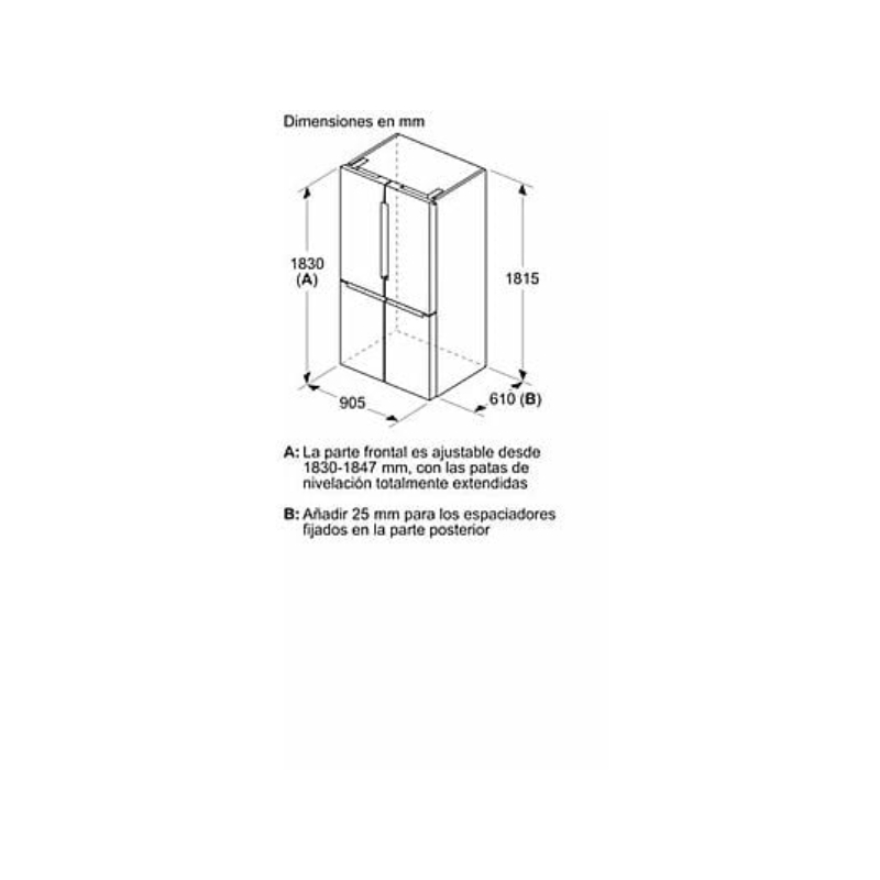 El frigorífico americano Bosch KFN96VPEA Serie 4 está diseñado para hogares que necesitan máxima capacidad, organización avanzada y un rendimiento fiable. Con 605 litros de capacidad total y un ancho especial de 90 cm, ofrece un espacio XXL ideal para familias numerosas o usuarios exigentes.