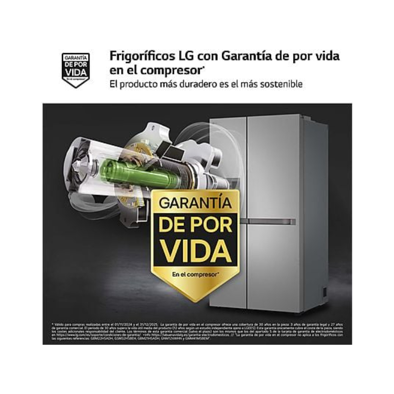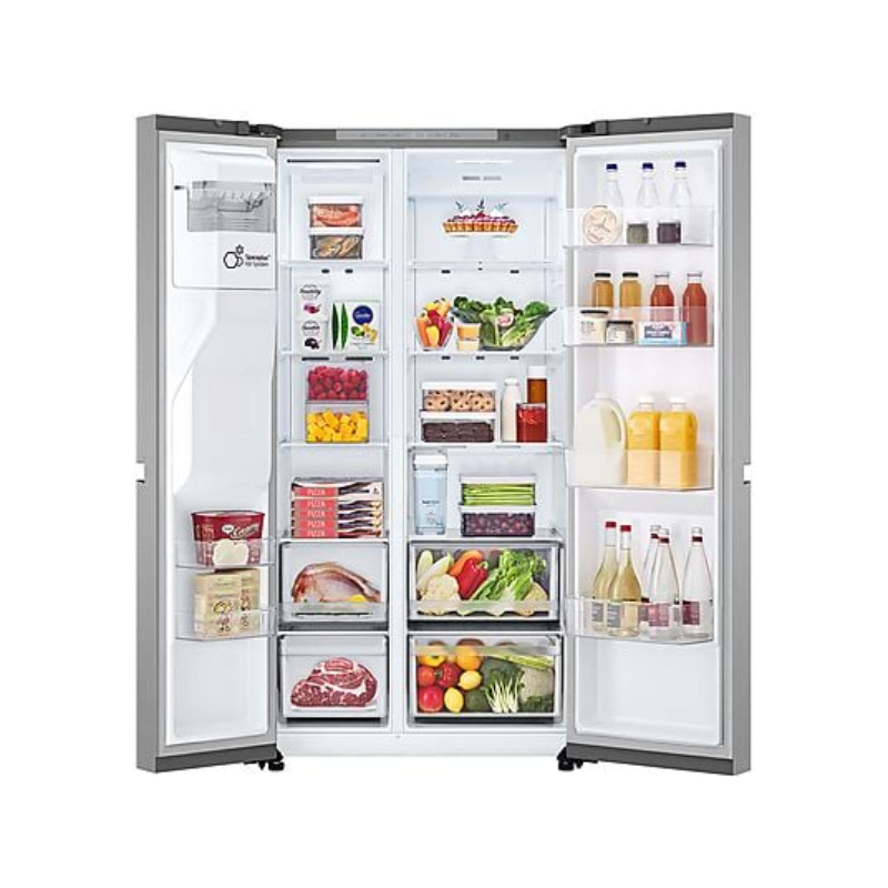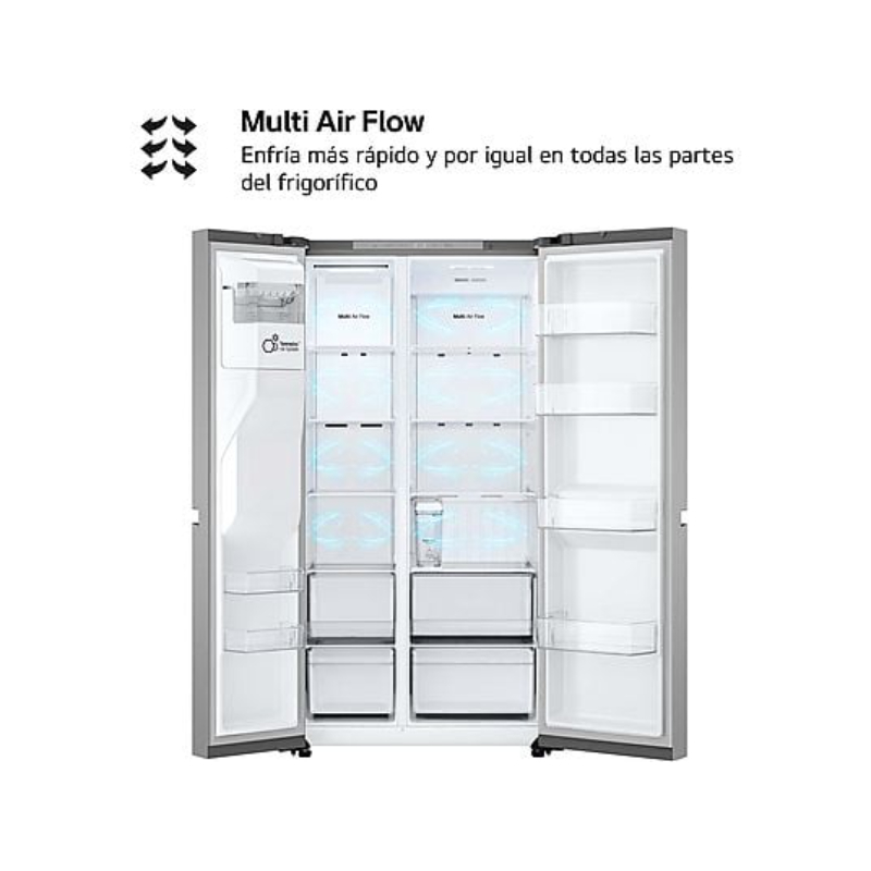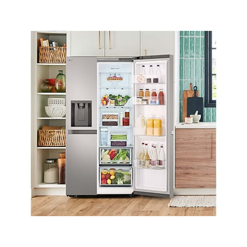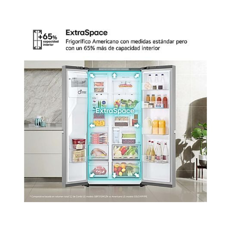 El frigorífico americano LG GSLC41PYPE ha sido diseñado para ofrecer el máximo espacio y una conservación avanzada de los alimentos. Con una capacidad total de 638 litros y una altura de 179 cm, es ideal para familias numerosas o para quienes necesitan un almacenamiento amplio y bien organizado.