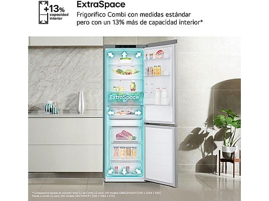 El frigorífico combi LG GBV3100CPY combina diseño moderno, eficiencia energética y tecnologías avanzadas para una conservación óptima de los alimentos. Con una capacidad total de 344 litros, es ideal para hogares que necesitan espacio y organización sin renunciar al estilo.