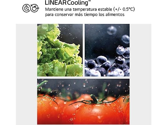 Gracias a la tecnología No Frost, evita la formación de escarcha y mantiene una temperatura constante, reduciendo el mantenimiento y mejorando la conservación. El sistema DoorCooling+™ distribuye el aire frío de forma más rápida y uniforme, especialmente en la zona de la puerta, mientras que FRESHBalancer™ regula la humedad para mantener frutas y verduras frescas por más tiempo.