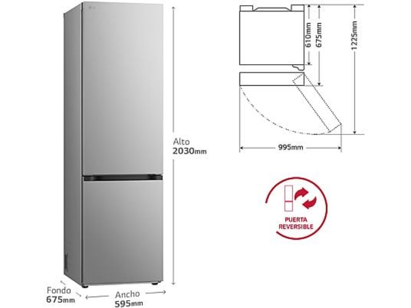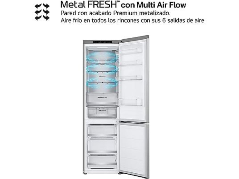 El frigorífico combi LG GBV5240APY ha sido diseñado para ofrecer una conservación óptima de los alimentos con el máximo confort en el día a día. Con una altura de 203 cm y una capacidad total de 387 litros, es la solución ideal para hogares que necesitan espacio, eficiencia y fiabilidad.