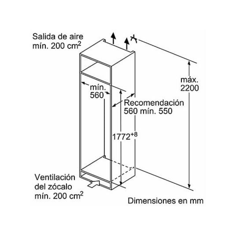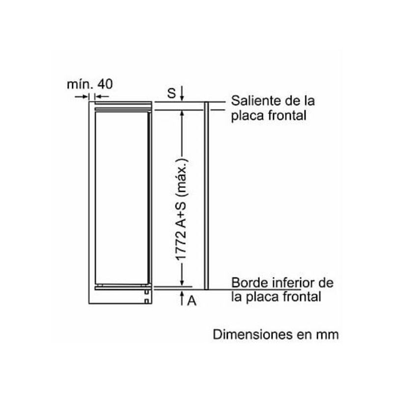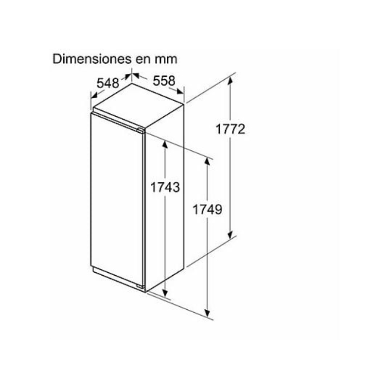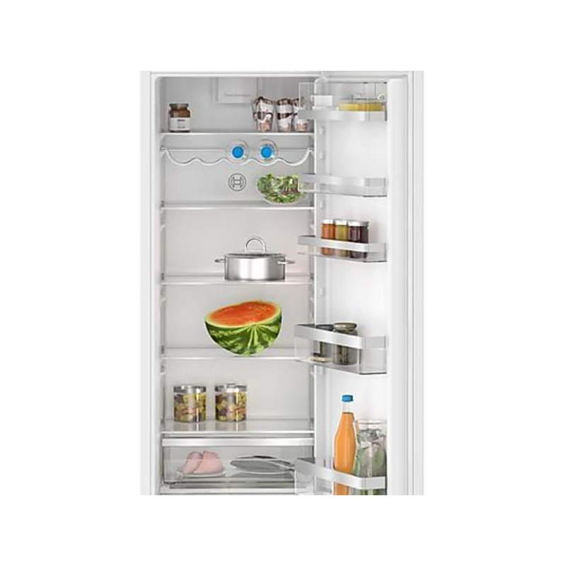 El Bosch KIR81ADD0 es un frigorífico integrable de una puerta diseñado para ofrecer máxima capacidad interior, conservación óptima de los alimentos y una integración perfecta en cocinas equipadas. Con 310 litros útiles, es ideal para hogares que priorizan espacio de refrigeración frente a congelación.