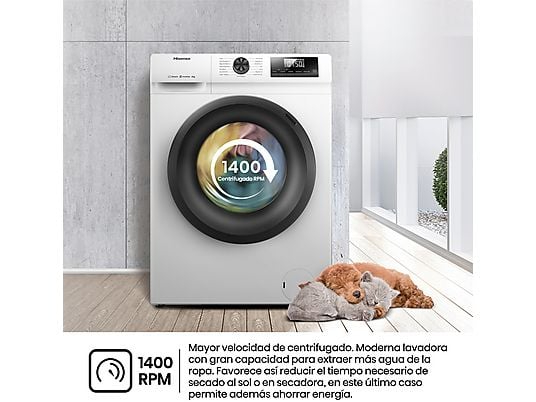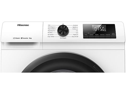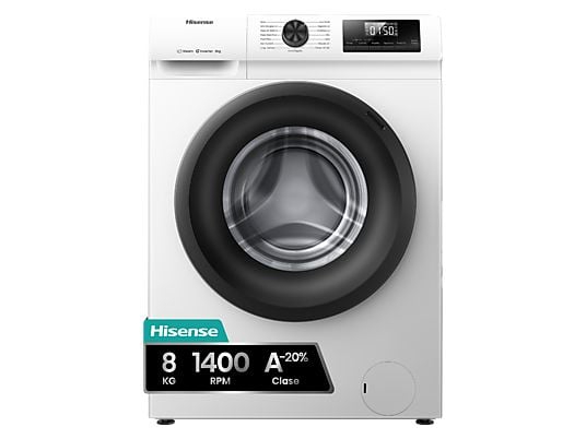 Lavadora carga frontal Hisense WF1Q8041BW, 8 kg, 1400 rpm, Función Vapor, Clase A-20%, Blanco