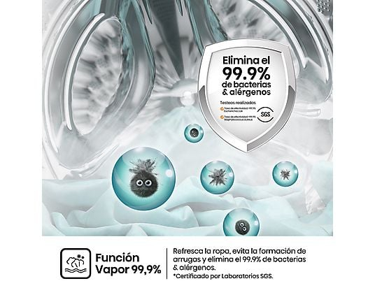 Lavadora de carga frontal que combina eficiencia, versatilidad y cuidado avanzado de la ropa. Con capacidad de 8 kg, 15 programas y función vapor, garantiza limpieza profunda y reducción de alérgenos incluso a bajas temperaturas.