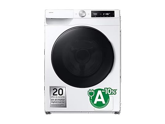 Incluye función vapor para eliminar alérgenos y reducir arrugas, compatibilidad con SmartThings para control remoto y programación de ciclos, detección de carga y bloqueo infantil para mayor seguridad. Con un nivel de ruido de 72 dB(A) durante el centrifugado y motor eficiente, combina rendimiento, confort y ahorro energético.