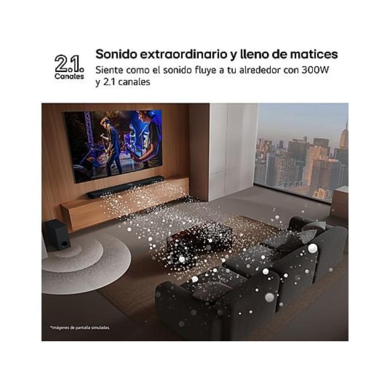 Sonido cautivador y envolvente. Siéntete el protagonista de tus contenidos gracias al sistema de sonido envolvente de 300W, 2.1 canales con subwoofer.