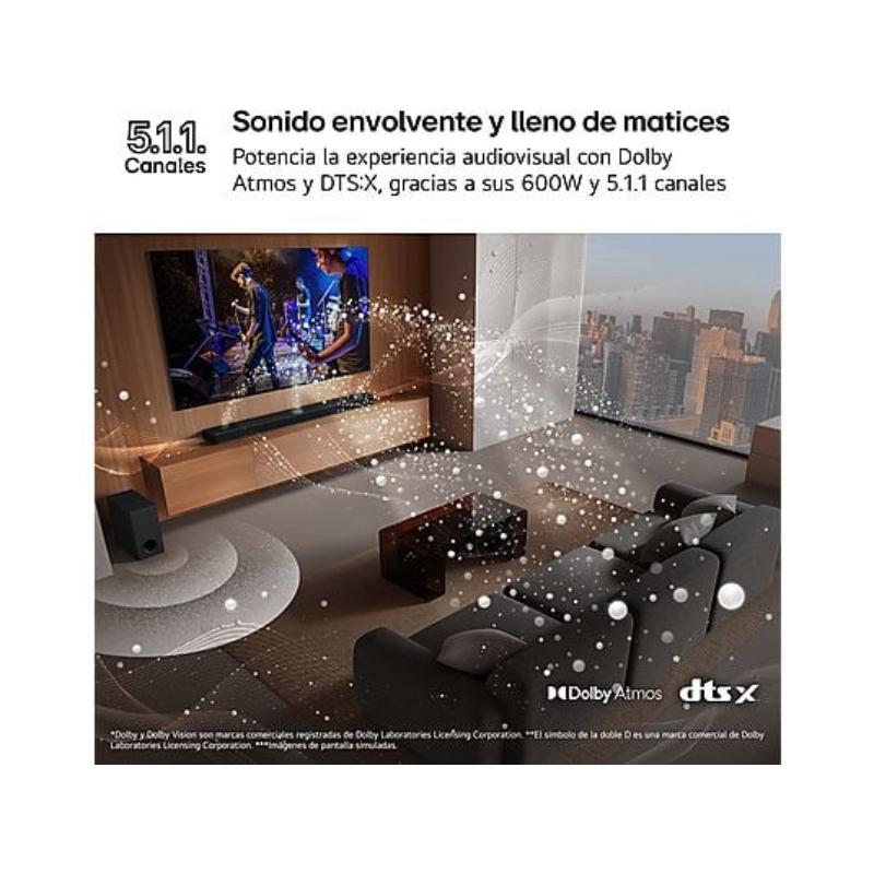 Sonido cautivador y envolvente. Siéntete el protagonista de tus contenidos gracias a la tecnología Dolby Atmos y DTS:X proyectada a través de un sistema de sonido envolvente de 500W, 5.1.1 canales con subwoofer.