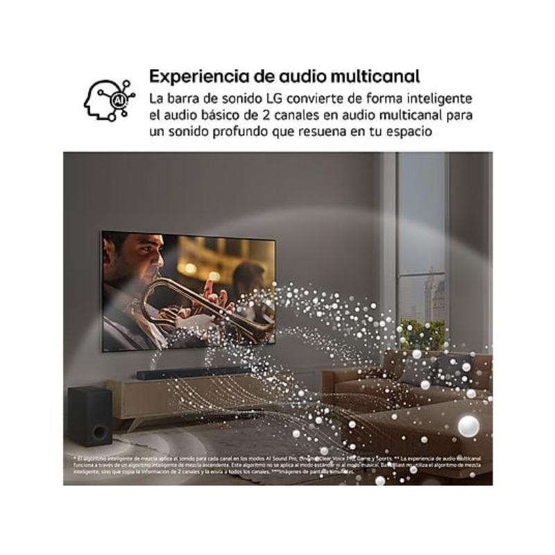 Siente una experiencia inmersiva con la barra de sonido LG S70TR, el contenido suena mejor que nunca. Divide el audio de dos canales en un audio multicanal, optimizando lo que escuchas.