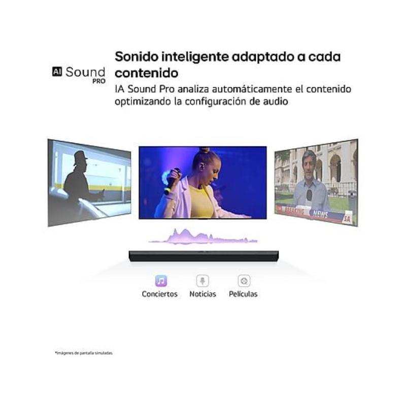 IA Sound Pro analiza automáticamente el contenido para optimizar al instante la configuración de audio de lo que se reproduce, ya sean peliculas, noticias o música. Capta todos los detalles con diálogos nítidos o una acción más contundente y potente, según el género.