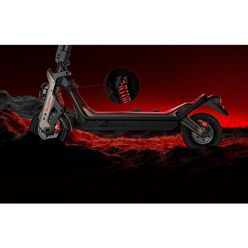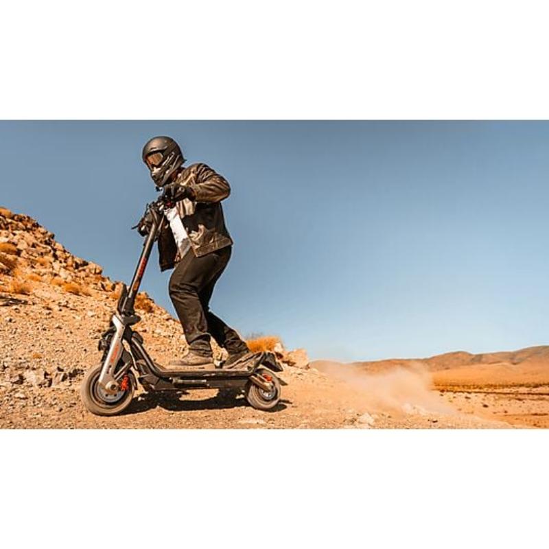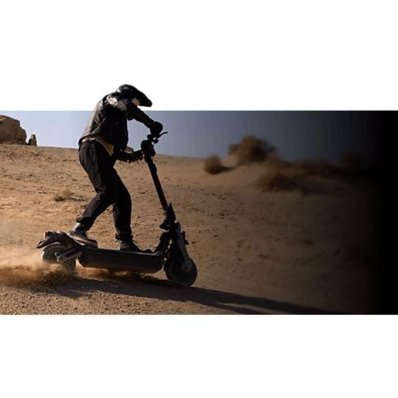 El Segway GT3 PRO es un patinete eléctrico de alto rendimiento, con doble motor de 3500 W, velocidad máxima de 80 km/h y aceleración 0-48 km/h en 3,9 s. Su suspensión hidráulica ajustable y neumáticos autorreparables garantizan control, estabilidad y confort en cualquier terreno.