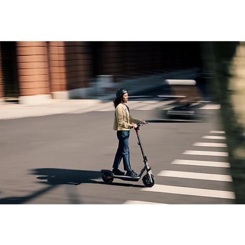 El Segway Ninebot F3 E combina potencia, autonomía y seguridad para desplazamientos urbanos largos y cómodos. Su diseño robusto y sistema de plegado rápido facilitan transporte y almacenamiento, mientras que su chasis sólido soporta hasta 120 kg.