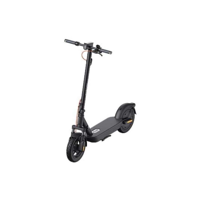 El motor brushless ofrece una potencia nominal de 400W y una máxima de 900W, suficiente para alcanzar los 25 km/h y subir pendientes de hasta 20% de inclinación. Su estructura reforzada de acero al carbono soporta hasta 120 kg, con manillar más alto y base ancha para mayor comodidad y estabilidad.