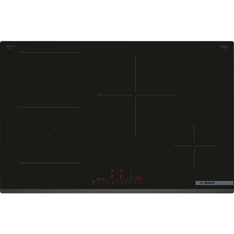 La placa de inducción Bosch Serie 6 PVS83KHC1Z combina diseño elegante en negro, alto rendimiento y funciones avanzadas para una experiencia de cocina precisa y cómoda. Su formato de 80 cm ofrece mayor espacio de trabajo para cocinar varios platos a la vez.