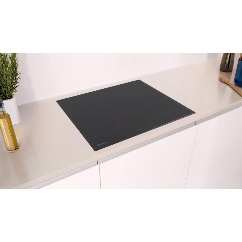 La placa de inducción Balay 3EB961LR ofrece rapidez, precisión y control total en la cocina, con funciones avanzadas que facilitan la preparación simultánea de varios platos y optimizan el consumo energético.