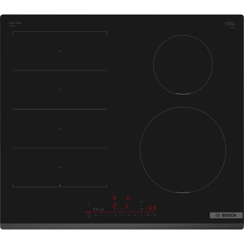 Placa inducción – Bosch PIX631HC1E, 4 zonas, 21 cm zona grande, 59.2 cm, Negro
