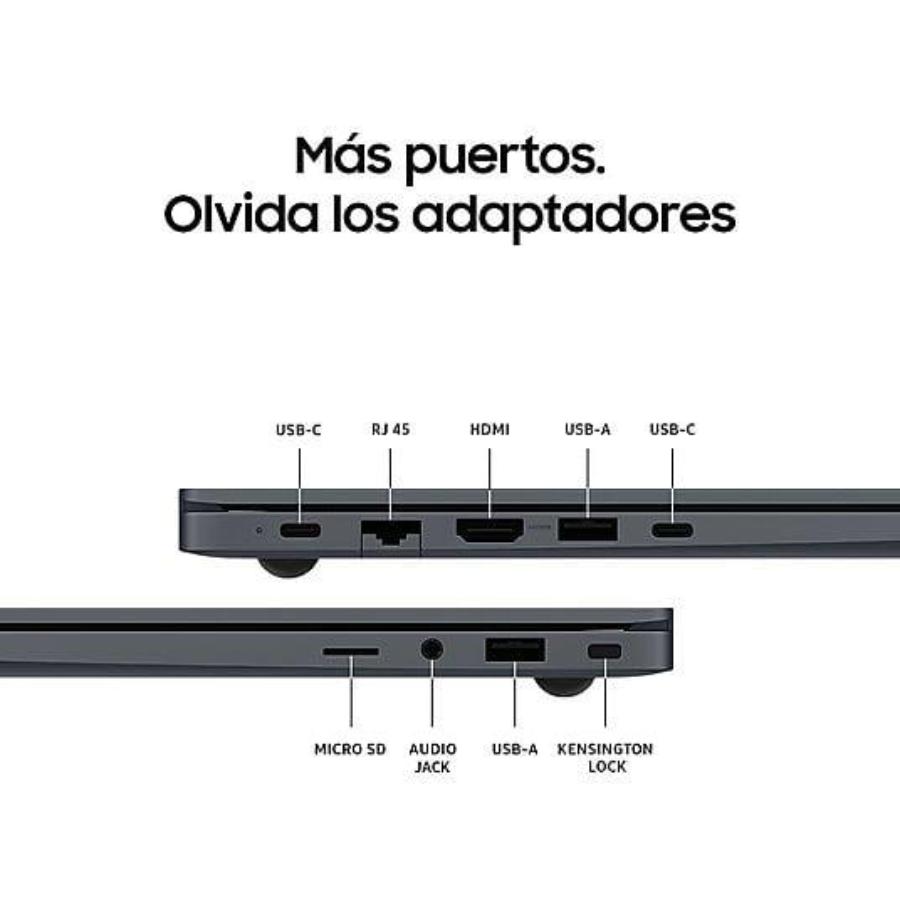 Olvídate de adaptadores y disfruta de una conectividad sin límites con Galaxy Book4 y Galaxy Book4 360. Podrás conectar sin ningún problema los dispositivos exteriores que quieras, ya que ambos cuentan con diferentes tipos de puertos. En el caso de Galaxy Book4, HDMI v1.4, dos puertos USB-A y dos USB-C, ranura microSD e incluso un puerto RJ45 para conexiones LAN de alta velocidad. Mientras que en Galaxy Book4 360, dos puertos Thunderbolt™ 4, HDMI, USB 3.2 Tipo-A, microSD y HP/MIC de 3,5pi.