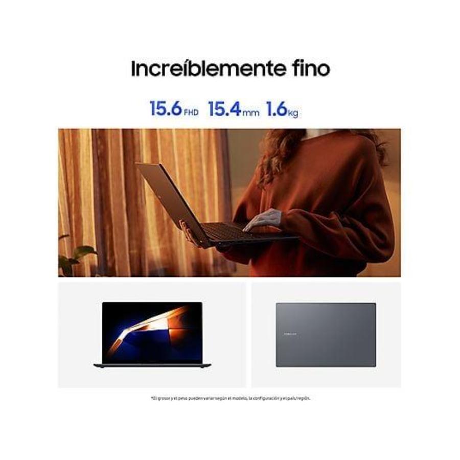 Uno de los puntos fuertes de Galaxy Book4 y Galaxy Book4 360 es la portabilidad. Envueltos en un cuerpo totalmente metálico, Galaxy Book4 es elegante, compacto y reúne todas las características que necesitas en un portátil con un peso inferior a 1,6 kg.