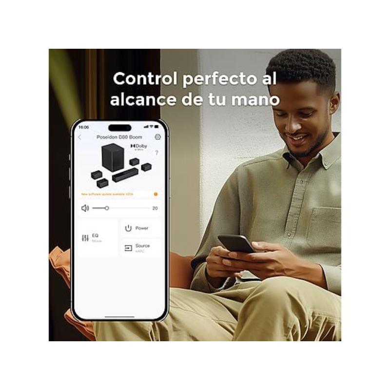 Con la aplicación ULTIMEA Smart puedes mejorar tu experiencia de escucha personalizando tu sistema de sonido según tu estilo. La aplicación no solo satisface todas tus necesidades de audio, sino que también mantiene tu barra de sonido actualizada con actualizaciones OTA regulares. Así, tu Poseidon D80 Boom siempre contará con las últimas funciones y ofrecerá una experiencia de sonido de primera calidad.