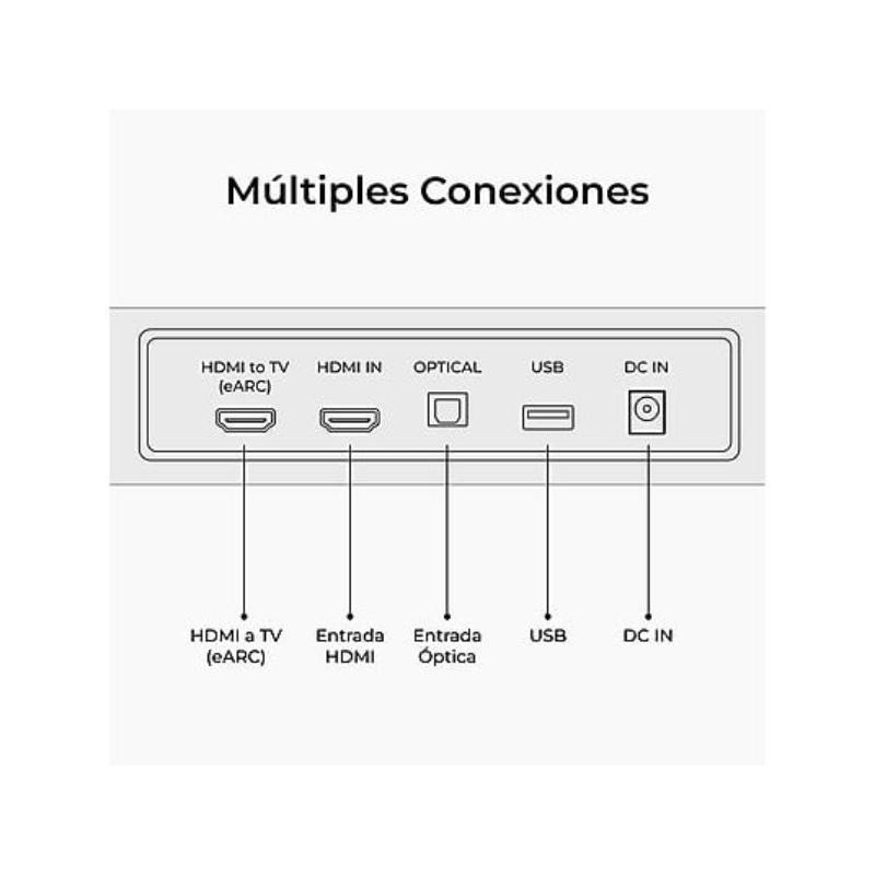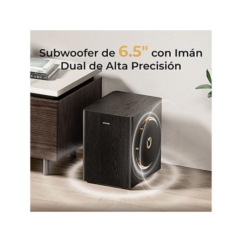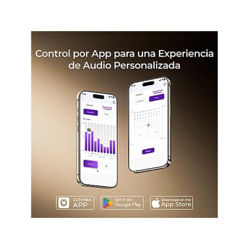 - HDMI eARC y Control por App: Dolby Atmos sin pérdida con hasta 37 Mbps de ancho de banda. Con control CEC, el televisor y la barra de sonido se sincronizan automáticamente. La aplicación ULTIMEA ofrece ecualizador de 10 bandas, 121 preajustes y actualizaciones OTA.
